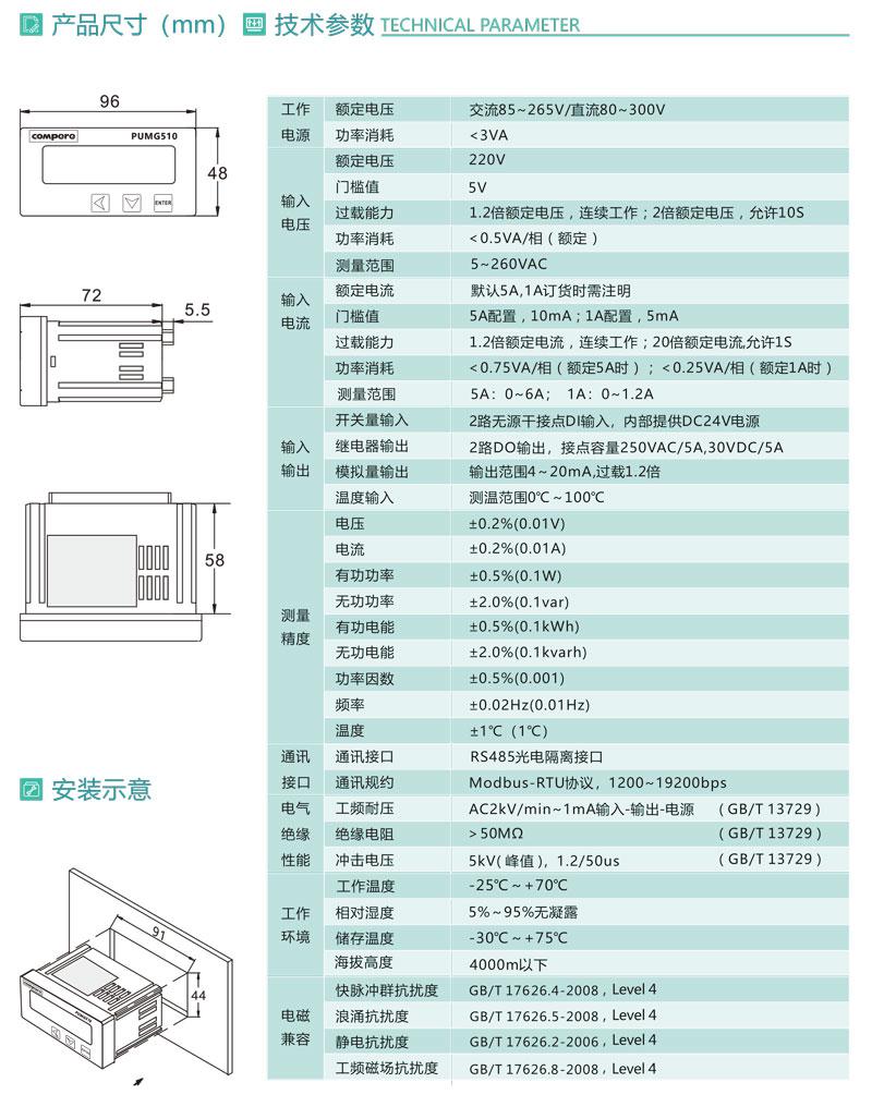 PUMG510單相智能電力儀表功能特點