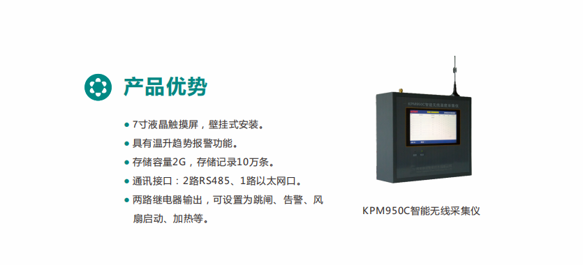 報警功能:用戶自定義溫度上下限預警、報警值。報警方式為聲光報警、短信報警。具有溫升趨勢報警功能。