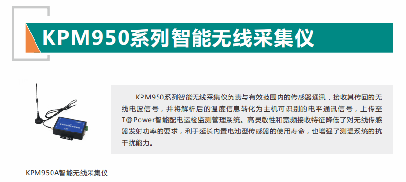 智能無線采集儀負責與有效范圍內的傳感器通訊,接收其回傳的無線電波信號,并將解析后的溫度信息轉化為主機可識別的電平通訊信號,上傳至T@Power智能配電運檢監測管理系統。