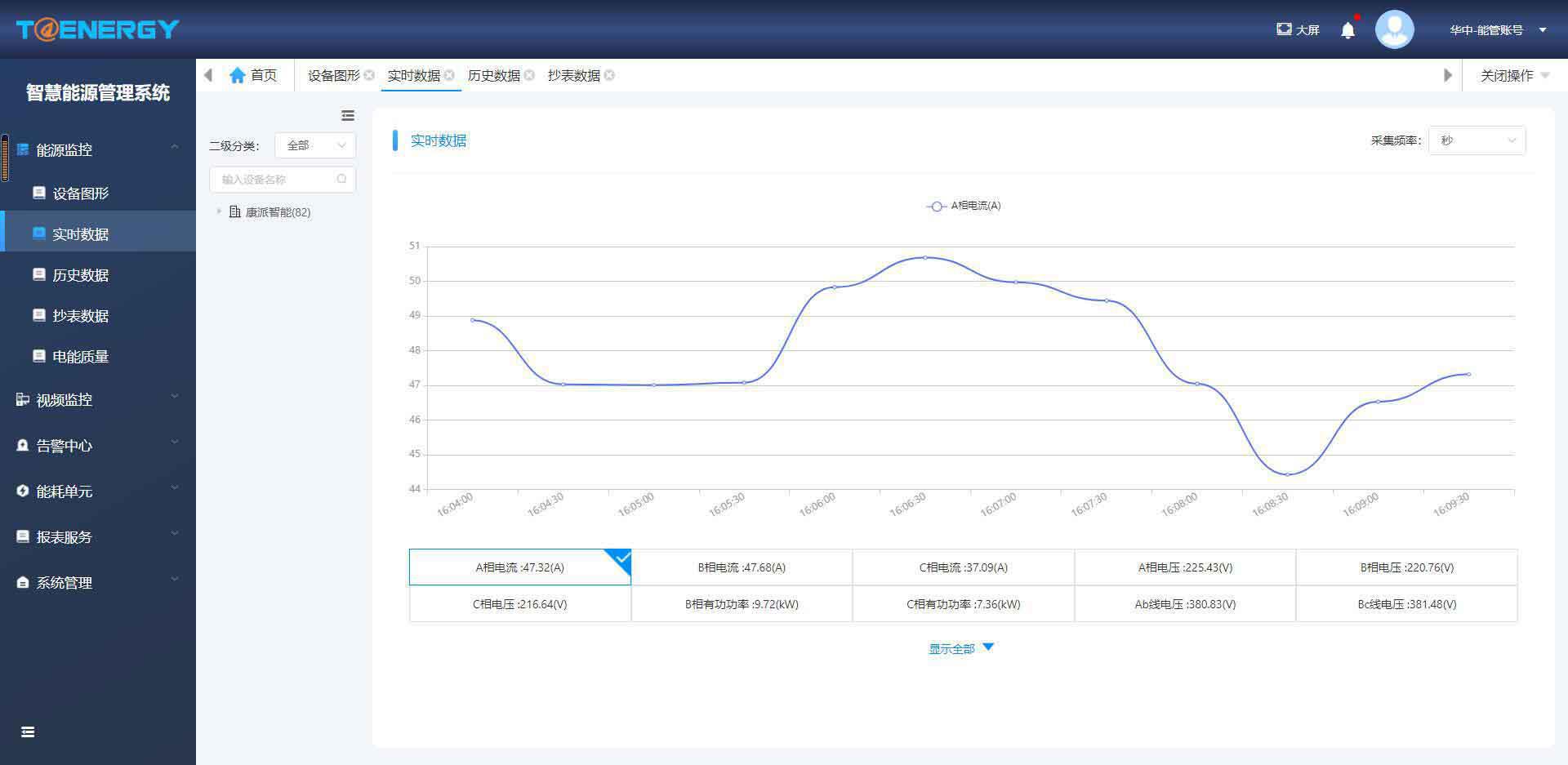 隨時查看智能終端的實時數據、歷史數據、事件數據、諧波分析、抄表數據。幫助用戶快速溯源故障發生點,實時掌握設備運行狀態。