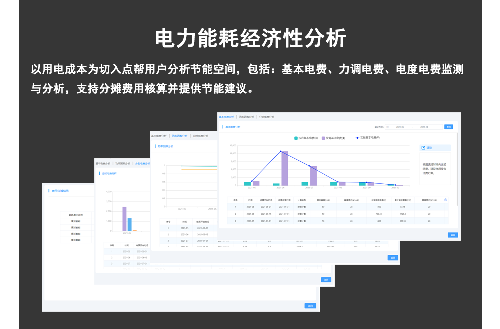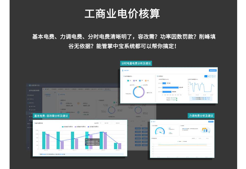 電費(fèi)優(yōu)化管理系統(tǒng),能夠解決采用兩部制電價(jià)的大工業(yè)用電企業(yè)容需電費(fèi)分析(基本電費(fèi))、分時(shí)電費(fèi)分析(電度電費(fèi))、力調(diào)電費(fèi)分析等電費(fèi)優(yōu)化問題,提供度電成本核算、降費(fèi)潛力分析、優(yōu)化建議、變損分析、負(fù)荷特性分析等多維度分析方案,并自動(dòng)生成月度電費(fèi)優(yōu)化報(bào)告,讓大工業(yè)用戶的電費(fèi)管理更加科學(xué)合理!