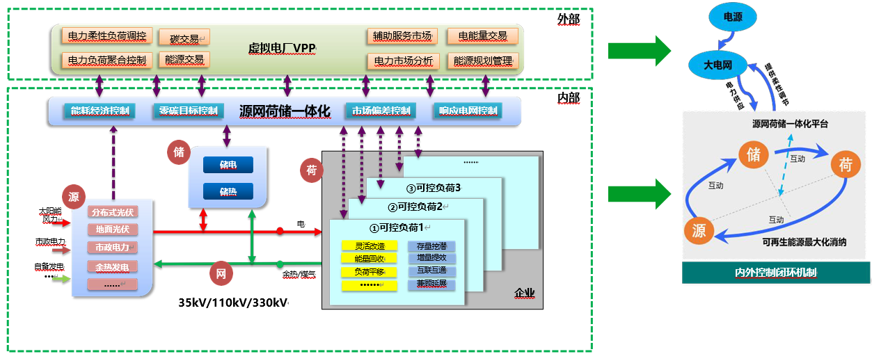 n 彈性調(diào)度:以虛擬電廠與電網(wǎng)的分界線,對(duì)內(nèi)構(gòu)建完整的系統(tǒng)閉環(huán),通過(guò)儲(chǔ)能調(diào)節(jié)、源荷互動(dòng)及柔性負(fù)荷響應(yīng)等,實(shí)現(xiàn)安全用電和可再生能源的最大化消納;