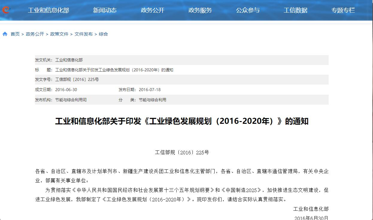 對此,工信部先后發(fā)布了《工業(yè)綠色發(fā)展規(guī)劃(2016-2020年)》等多份文件,旨在加快推動綠色制造體系建設(shè),打造綠色制造先進典型,引領(lǐng)相關(guān)領(lǐng)域工業(yè)綠色轉(zhuǎn)型。