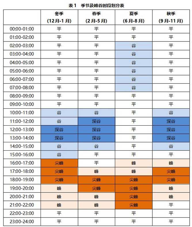 根據分時電價浮動比例,分時電價峰谷系數取值分別為:峰系數1.7、尖峰系數2.0、谷系數0.3、深谷系數0.1。平時段系數為1。